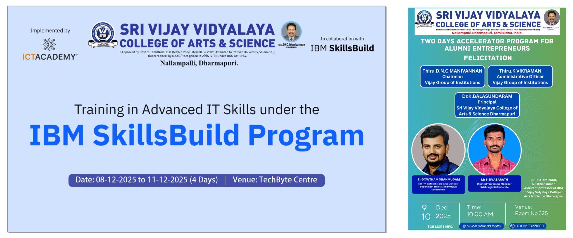 Sri Vijay Vidyalaya College of Arts & Science (SVVCAS) is a co-educational institution located in Nallampalli, Dharmapuri, Tamil Nadu. Affiliated to Periyar University, Salem. The college was established in 2009.